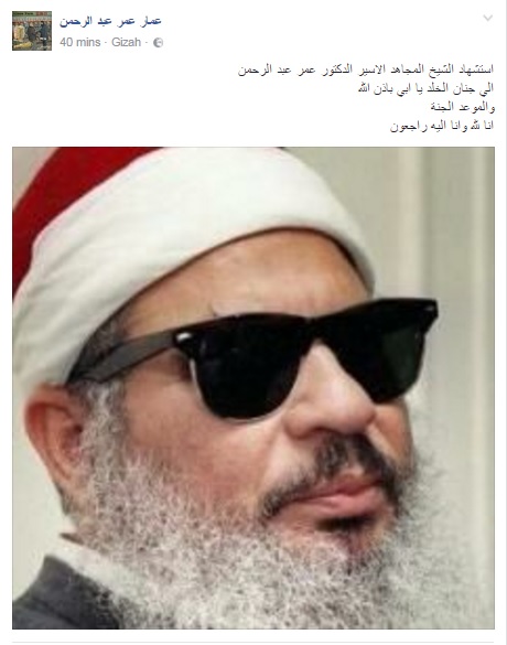 كما أعلن أيضا ابنه، عمار عمر عبد الرحمن، وفاة والده.