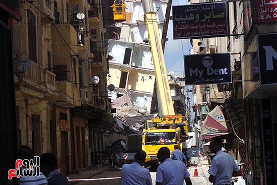 أعلن المهندس على مرسي، رئيس حي وسط الإسكندرية، الانتهاء من إزالة نصف العقار المائل بمنطقة الأزاريطة من الجهة البحرية وحتى الطابق الأول أعلى الميزانين، تحت إشراف اللجنة المشكلة من كلية الهندسة، وبتنفيذ الهيئة الهندسية بالمنطقة الشمالية.